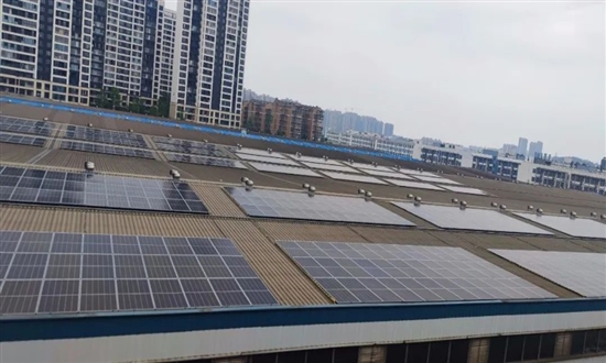 該項目是中輕長泰踐行“綠色制造”理念,勇?lián)鐣熑危涌炱髽I(yè)智能化轉型,推進綠色低碳發(fā)展的重要舉措之一,利用公司生產基地廠房屋頂鋪設光伏組件,選用575Wp單晶硅組件,共918塊,總裝機容量527.85kWp,采用“自發(fā)自用、余量上網”方式運行。該項目的順利實施徹底解決了公司生產基地夏季用電高峰期供電不穩(wěn)定的問題,實現(xiàn)了減碳、降本、增效、隔熱、提升企業(yè)形象“一舉多得”。