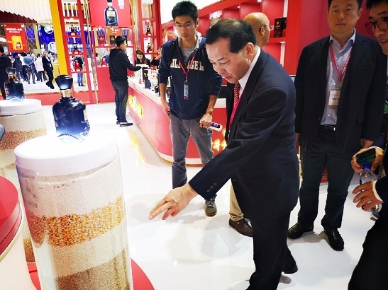 郭建全一行參觀展會,與食品院有技術合作的五糧液、酒鬼酒、國臺酒、釣魚臺酒、秦含章酒、梁大師等企業負責人深入溝通服務合作。