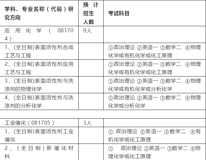 熱忱歡迎有志于從事日化行業工作和表面活性劑/洗滌劑研究開發工作的人士報考我院碩士研究生。