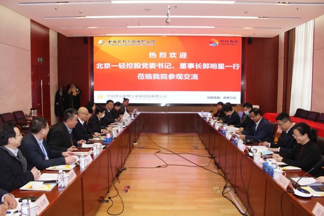 2022年1月19日,保利集團黨委常委、副總經理、保利中輕黨委書記、董事長張萬順, 保利中輕黨委副書記、總經理王珂靈, 保利中輕副總經理、中國食品發(fā)酵工業(yè)院(以下簡稱中國食品研究院)董事長蔡木易會見了北京一輕控股有限責任(以下簡稱北京一輕控股)公司黨委書記、董事長郭明星一行,并陪同參觀了保利藝術博物館、中國食品研究院各研究中心、重點實驗室。隨后,雙方進行了座談交流。